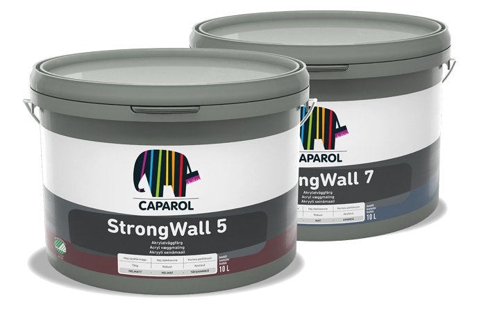 Caparol Strongwall är en högtäckande akrylatfärg i glans 5 och 7 för målning av tak och väggar inomhus. Den höga täckkraften gör målningen effektiv och akrylatbindemedlet garanterar god vidhäftning och en tålig yta med hållbart resultat.